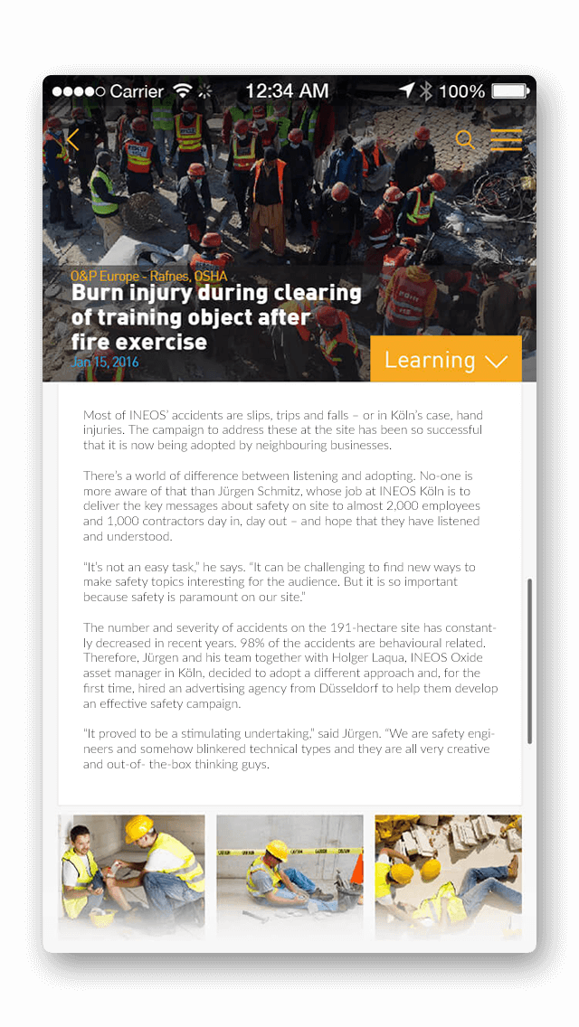 With INEOS BRIEF, you are kept instantly up-to-date about the company as a whole, your own Business Unit and other Business Units. About what’s going on, what’s in the news, calamities and key financial indicators, including commodity pricing. And with a crisis at hand, you get an instant push notificiation with up to to date crisis documents.
